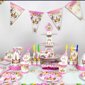 16 Item Set Includes; 10pcs Paper Cups, 10pcs Paper Tray, 20pcs Tissue, 1pc Triangle Flag, 1pc Tablecloth, 6pcs Party Hats, 10pcs Knives, 10pcs Forks, 10pcs Spoons, 10pcs Straws, 6pcs Blow Dragon, 6pcs Speaker, Toothpick Insert, 10pcs Flags, 10pcs Return gift…