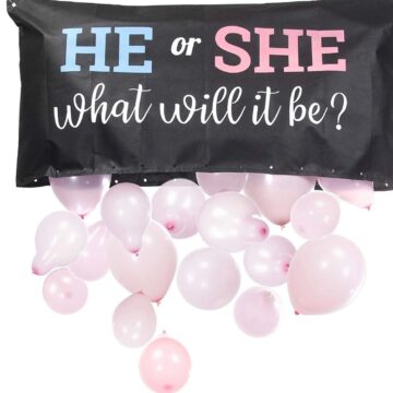 4ft wide and 2ft length gender reveal bag (comes with bag and a set of pink and blue balloons)